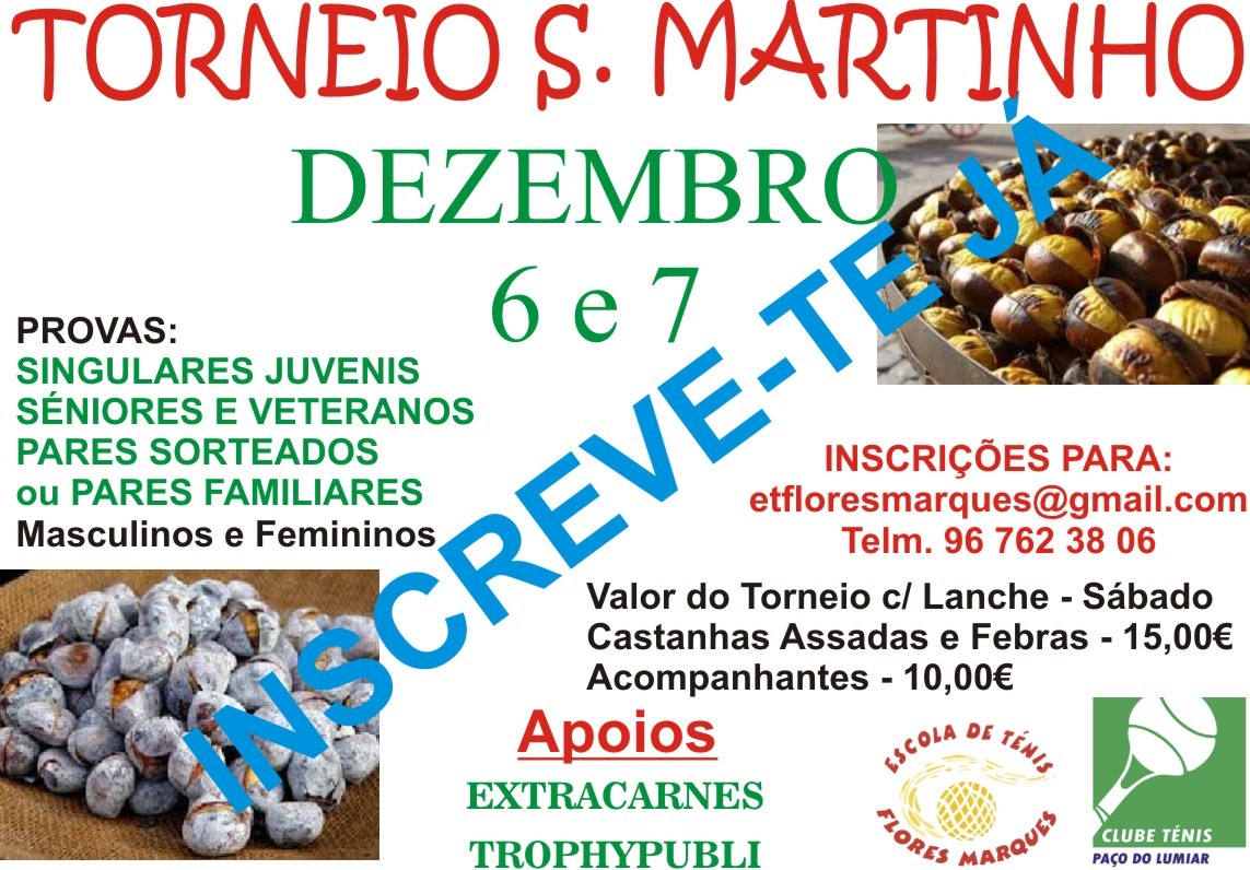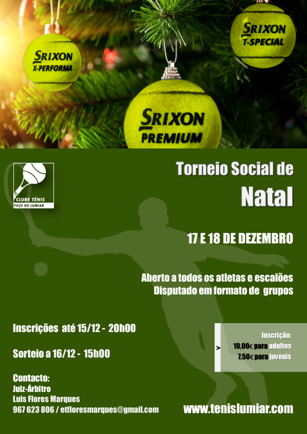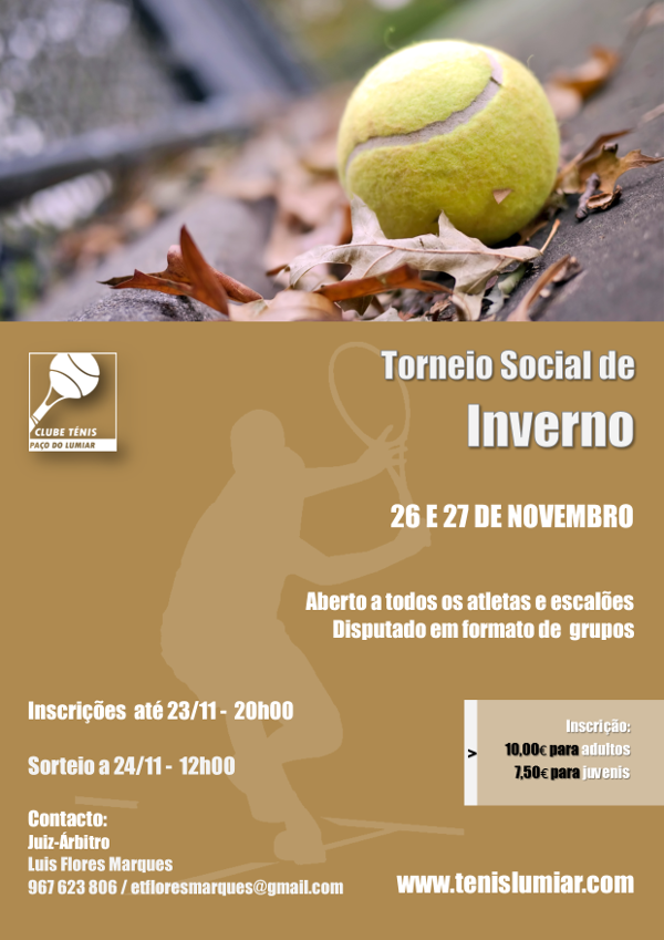 O Clube Ténis Paço Lumiar e a Escola de Ténis vão organizar um torneio social aberto a todos os praticantes e atletas, que será disputado por escalões etários, e em formato de grupos por forma a permitir maior competição e convívio.